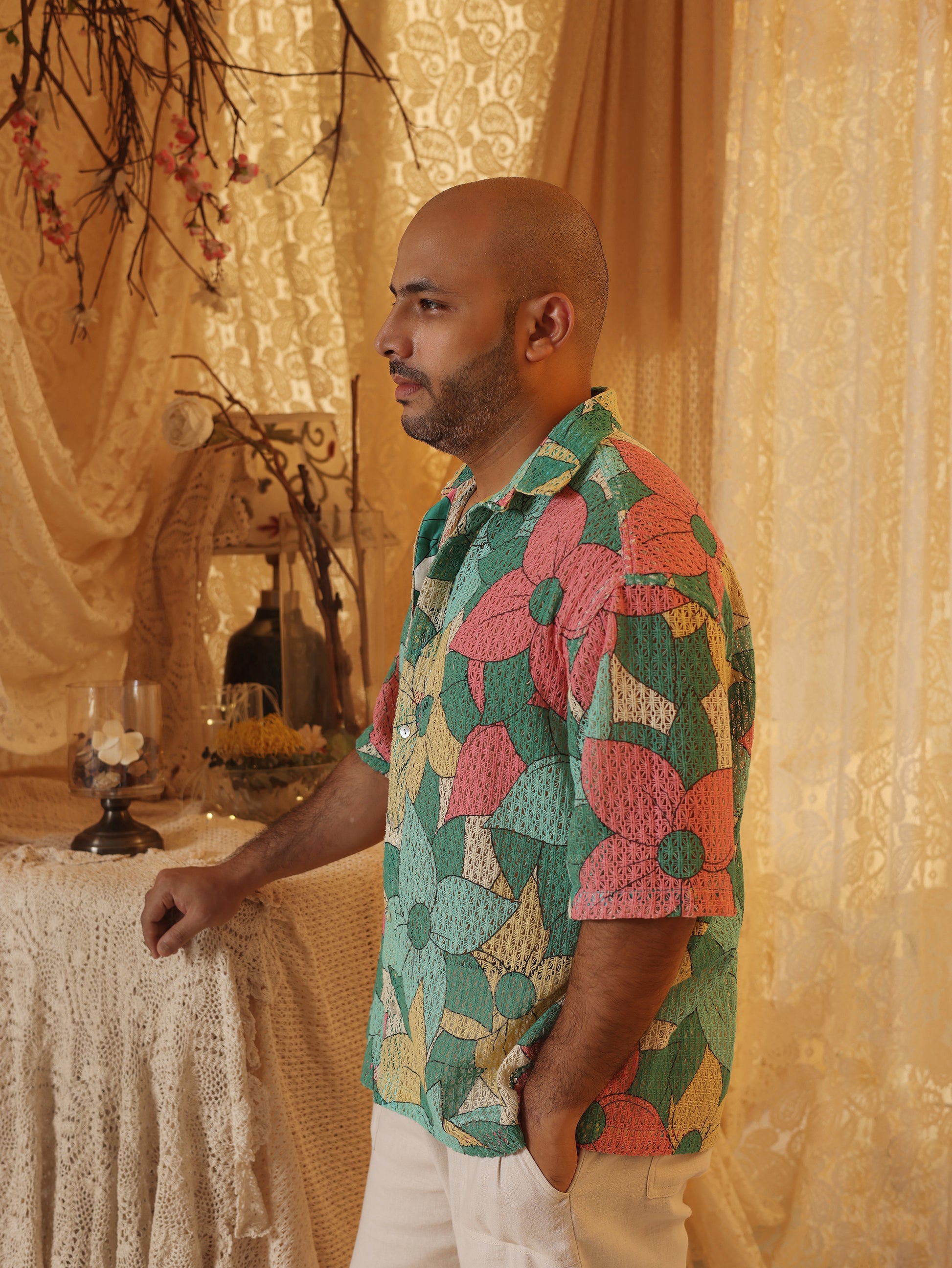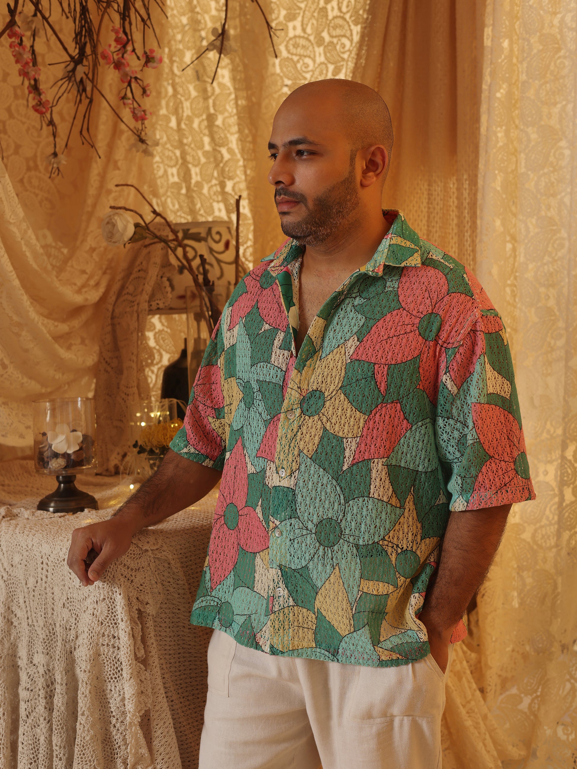 Big Floral Cotton Net Men's Shirt