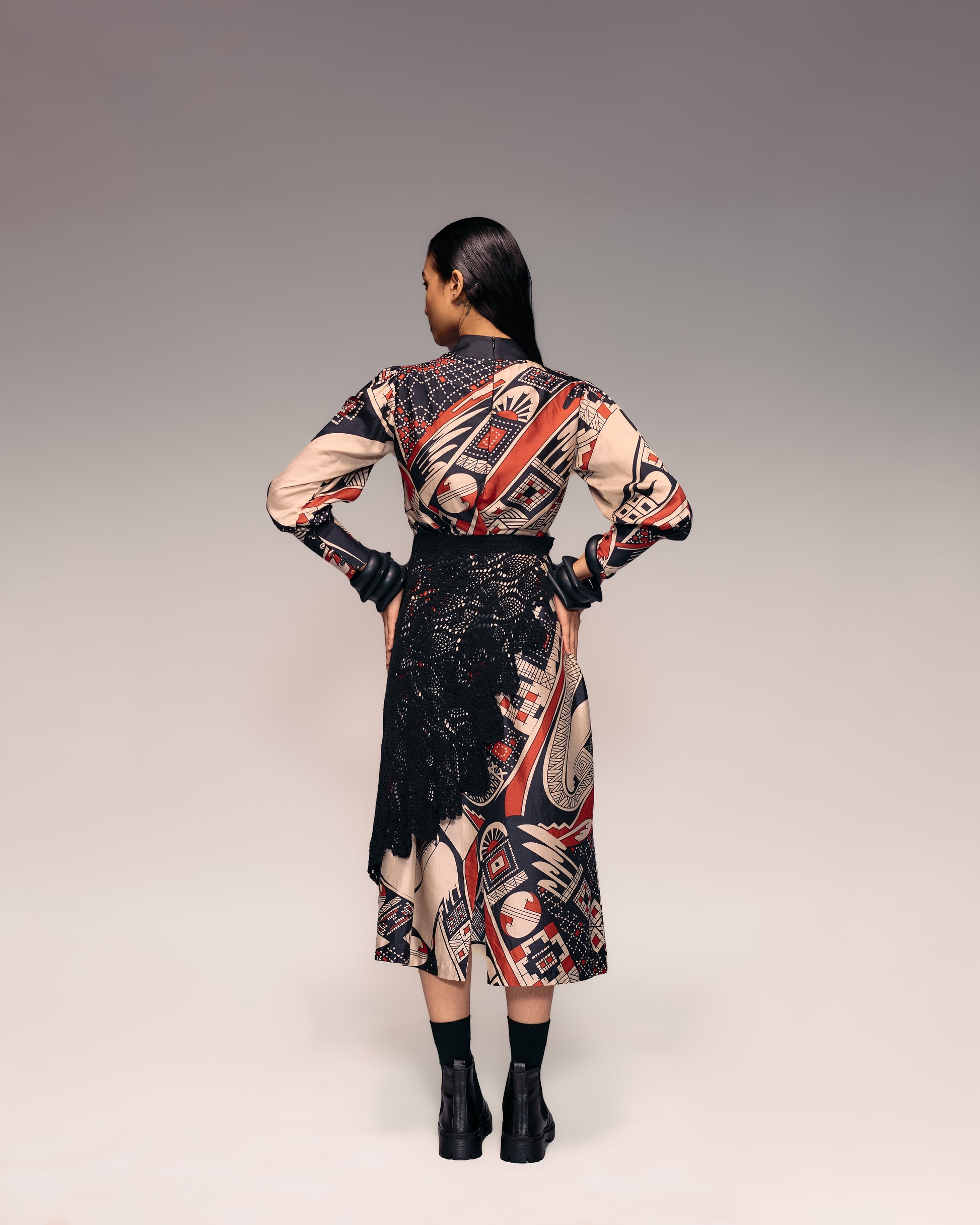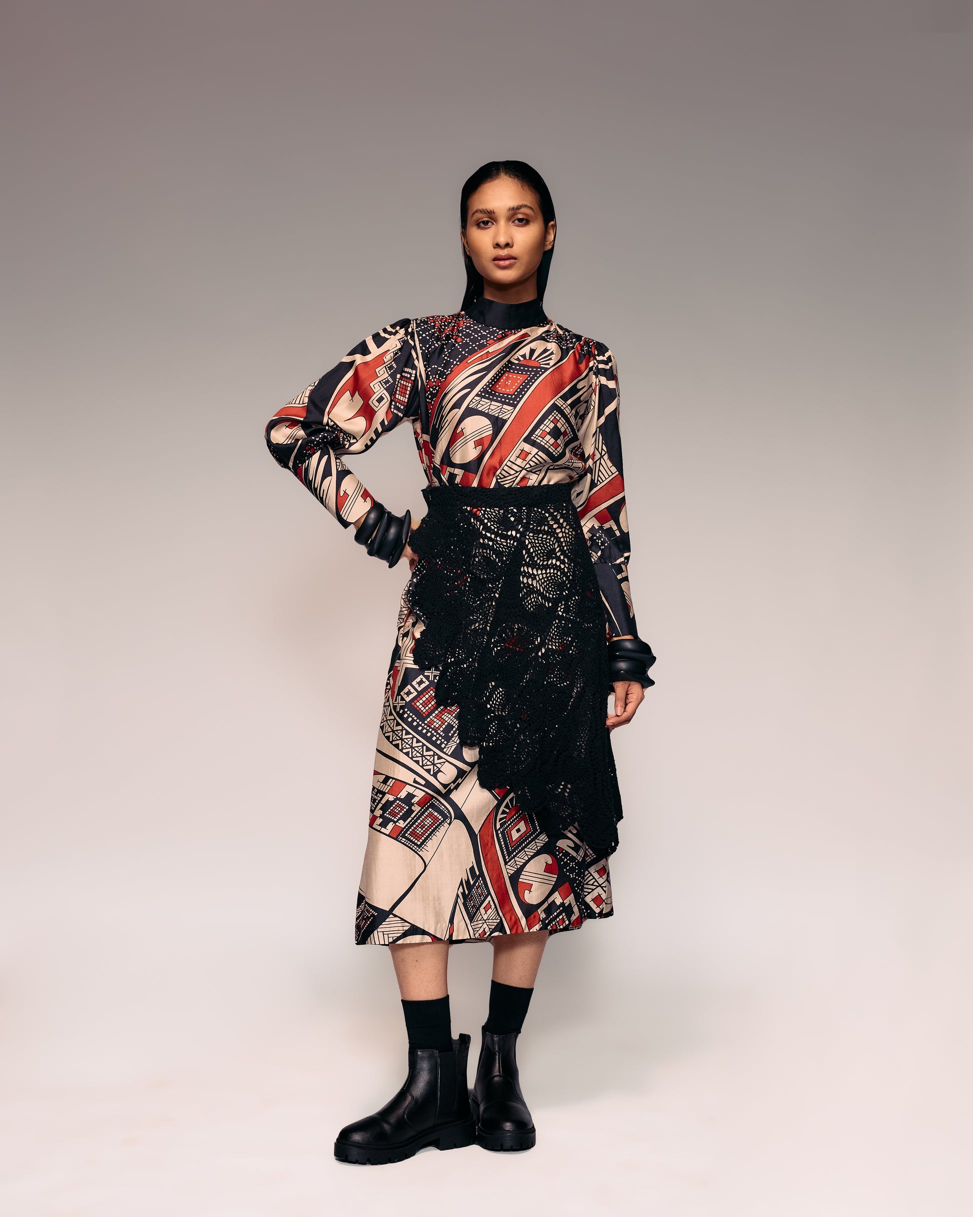 The silhouette falls gracefully with soft cascading folds, defined by scalloped edges that accentuate the handmade artistry. It’s a creative reimagination of crochet wear transforming a traditional technique into a contemporary fashion statement. Perfect for resort evenings, art events, or statement parties where craftsmanship speaks louder than embellishment.