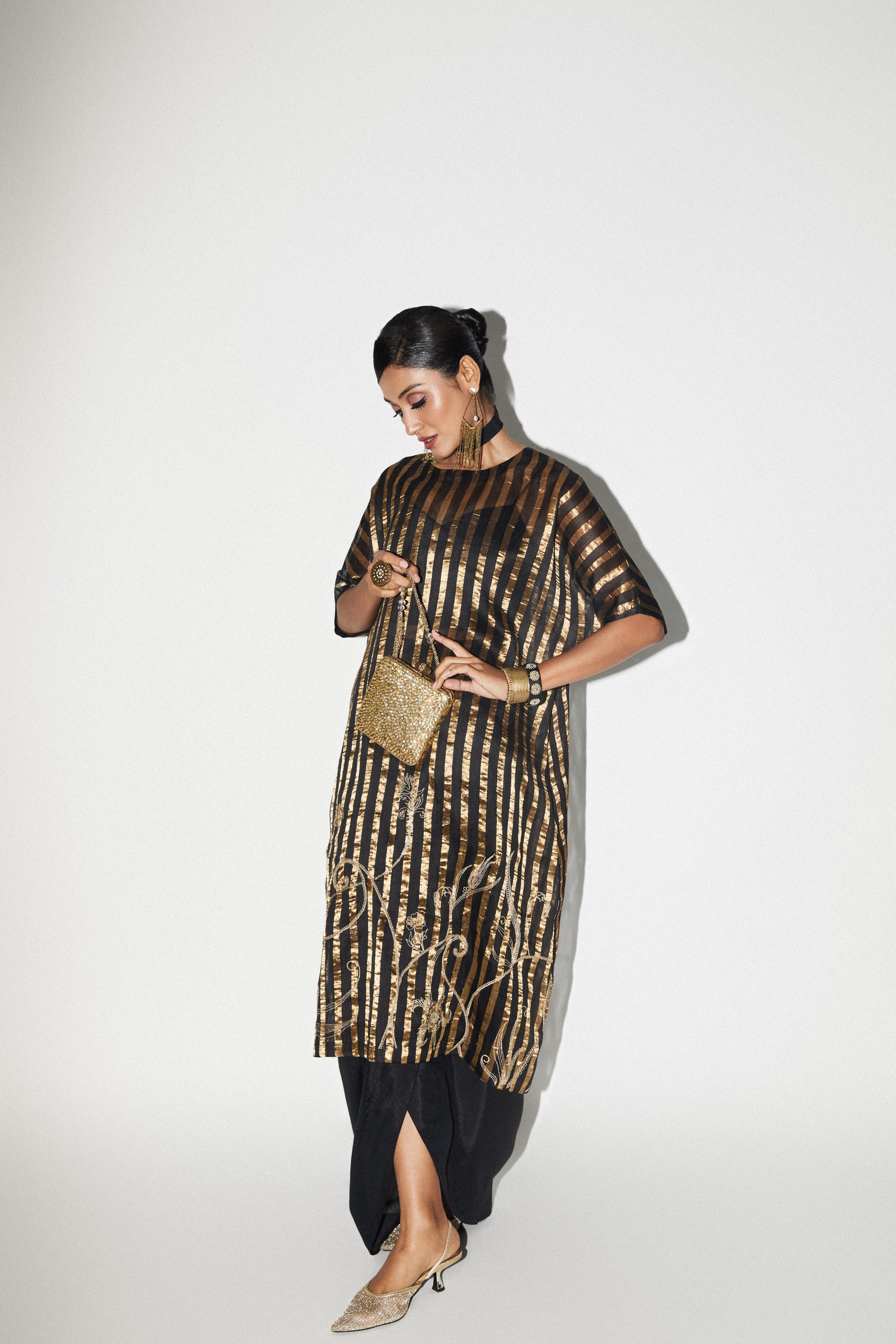 The skirt has a body-skimming, draped silhouette. Team it up with tunics and tops for an elegant event look.