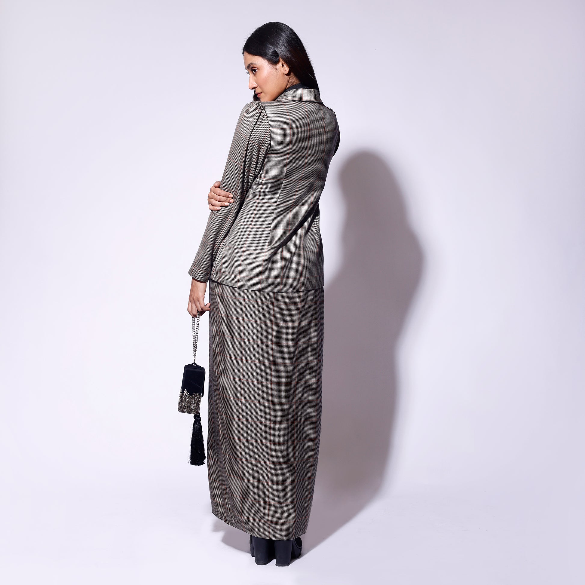 This houndstooth check drape skirt blends classic pattern with contemporary design. The asymmetrical draping adds dimension and movement, while the bold check print offers a stylish twist. Ideal for both workdays and weekend outings, it’s a versatile statement piece that exudes effortless style.