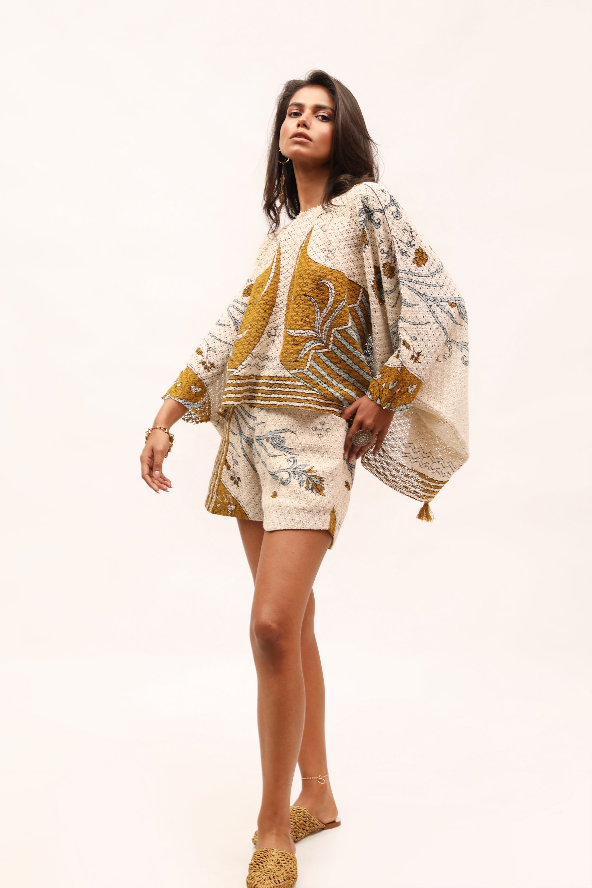These mini shorts made from printed cotton net have a relaxed fit and side pockets. Wear yours with sandals and the matching top to complete the look.