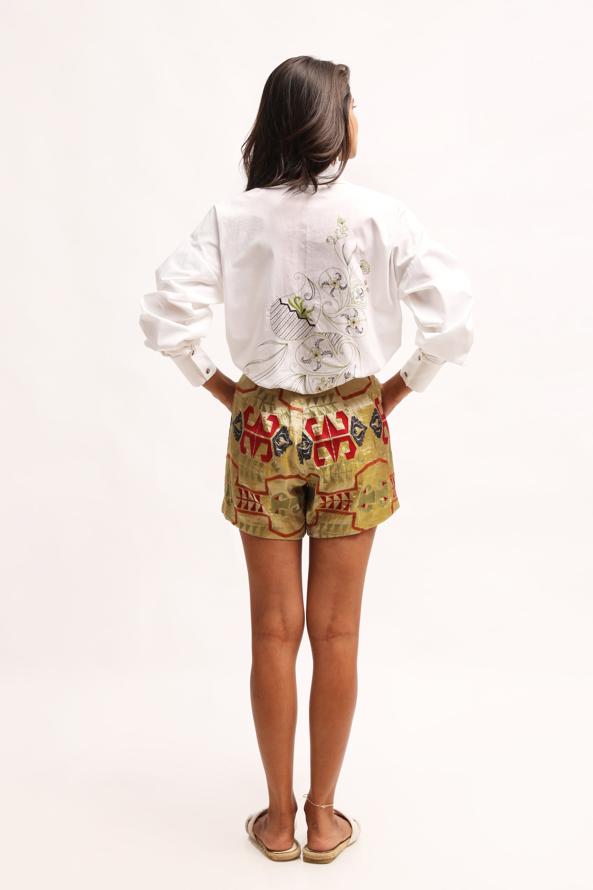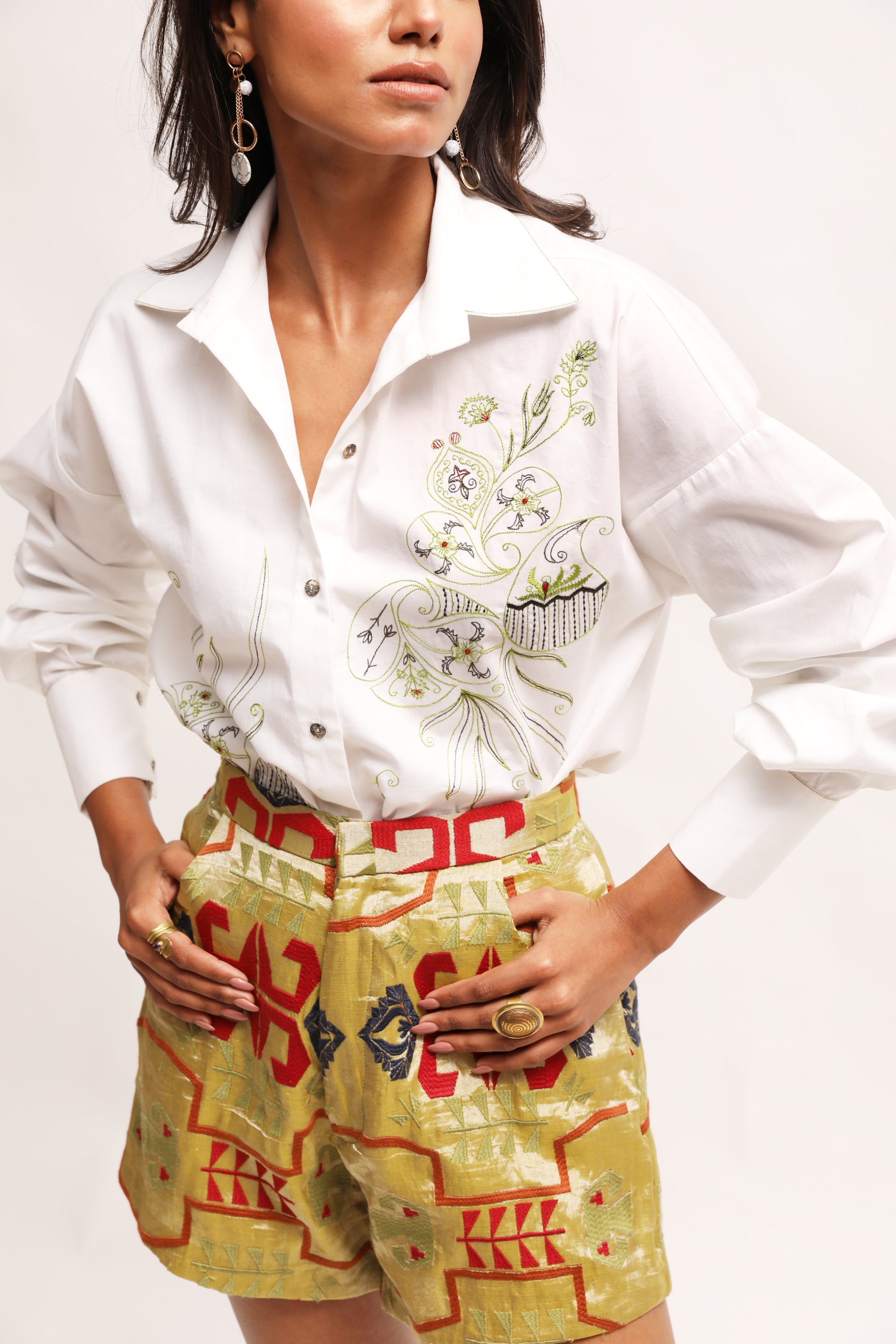Made from cotton poplin, this long-sleeved shirt has a pointed collar, relaxed cut and machine-embroidered front and back bodice. Wear yours with embroidered shorts and strappy sandals for a look inspired by the brand.
