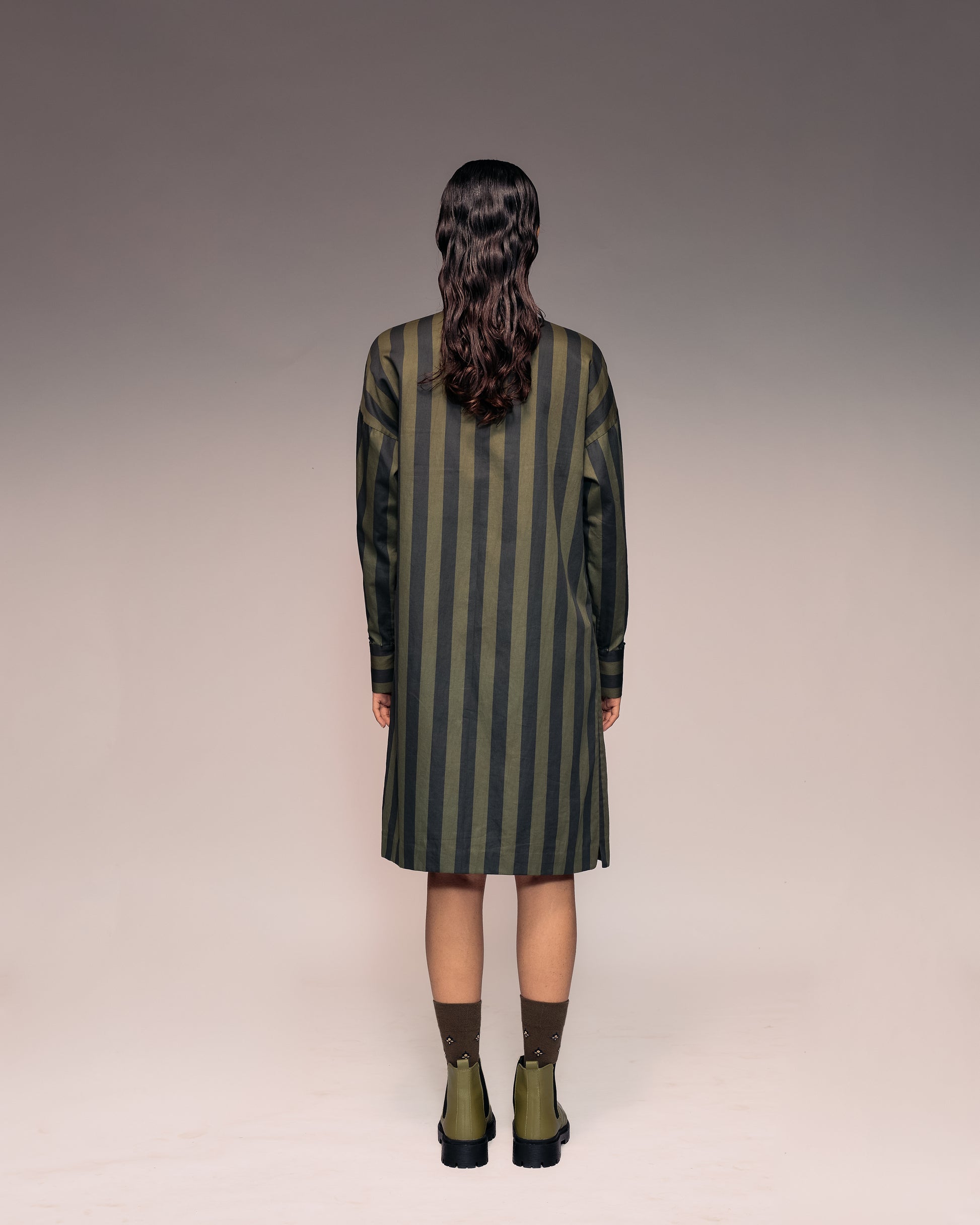 Green Black Stripe Shirt Dress