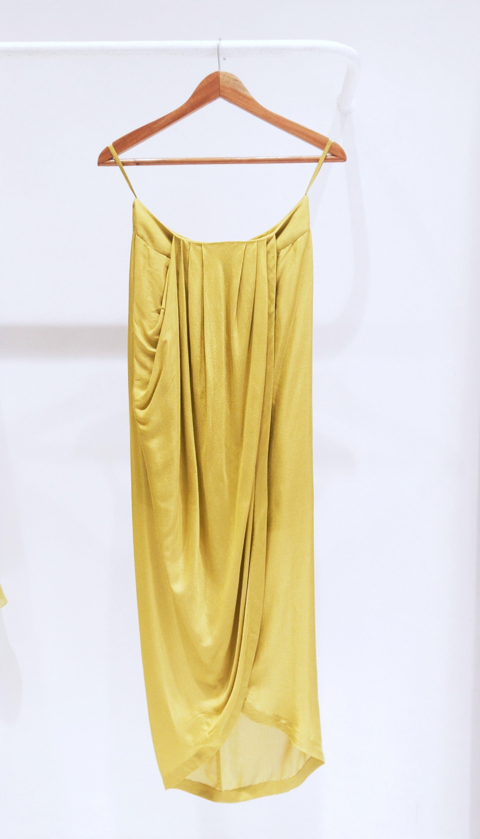 The skirt has a body-skimming, draped silhouette. Team it up with tunics and tops for an elegant event look.