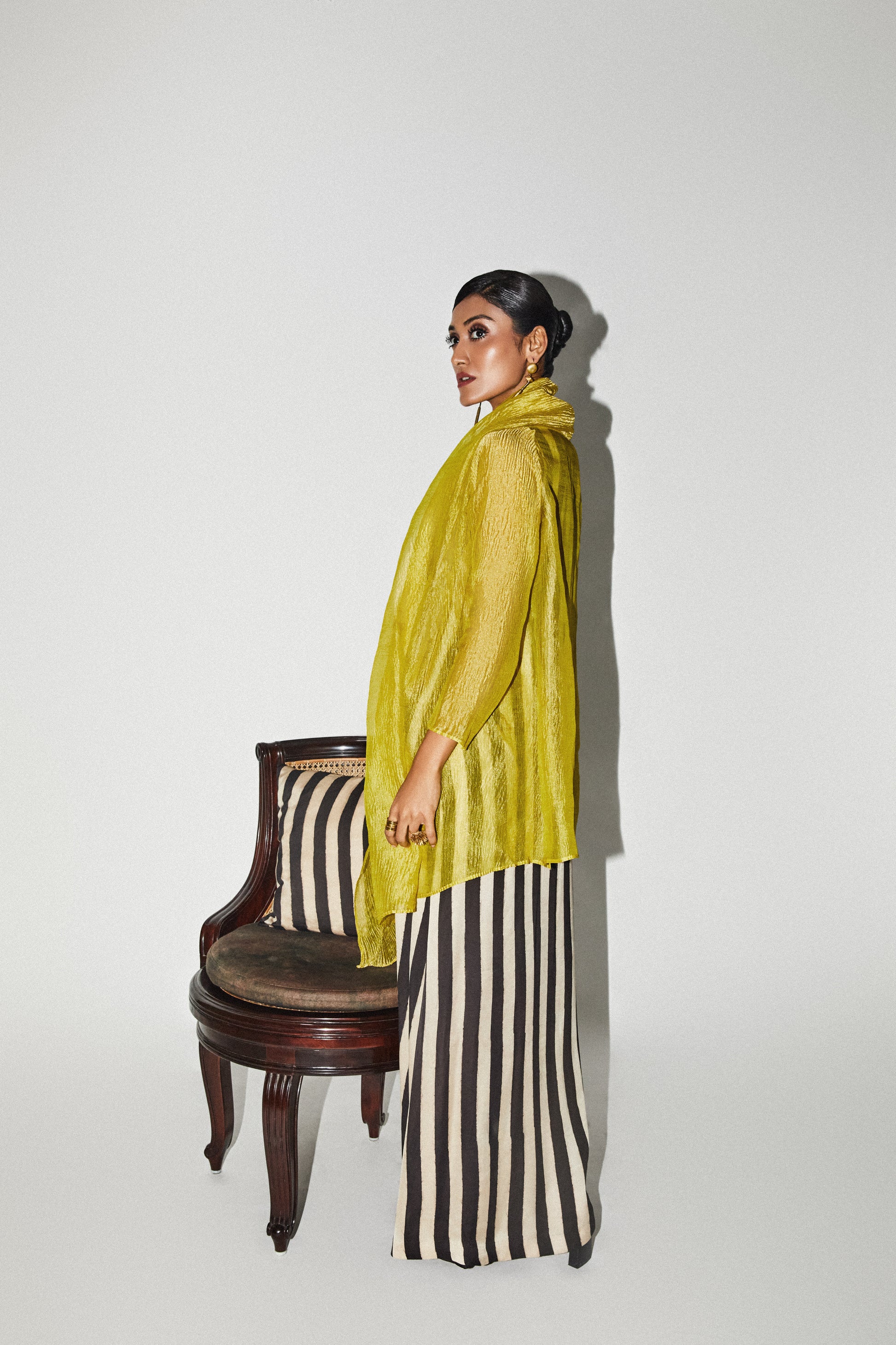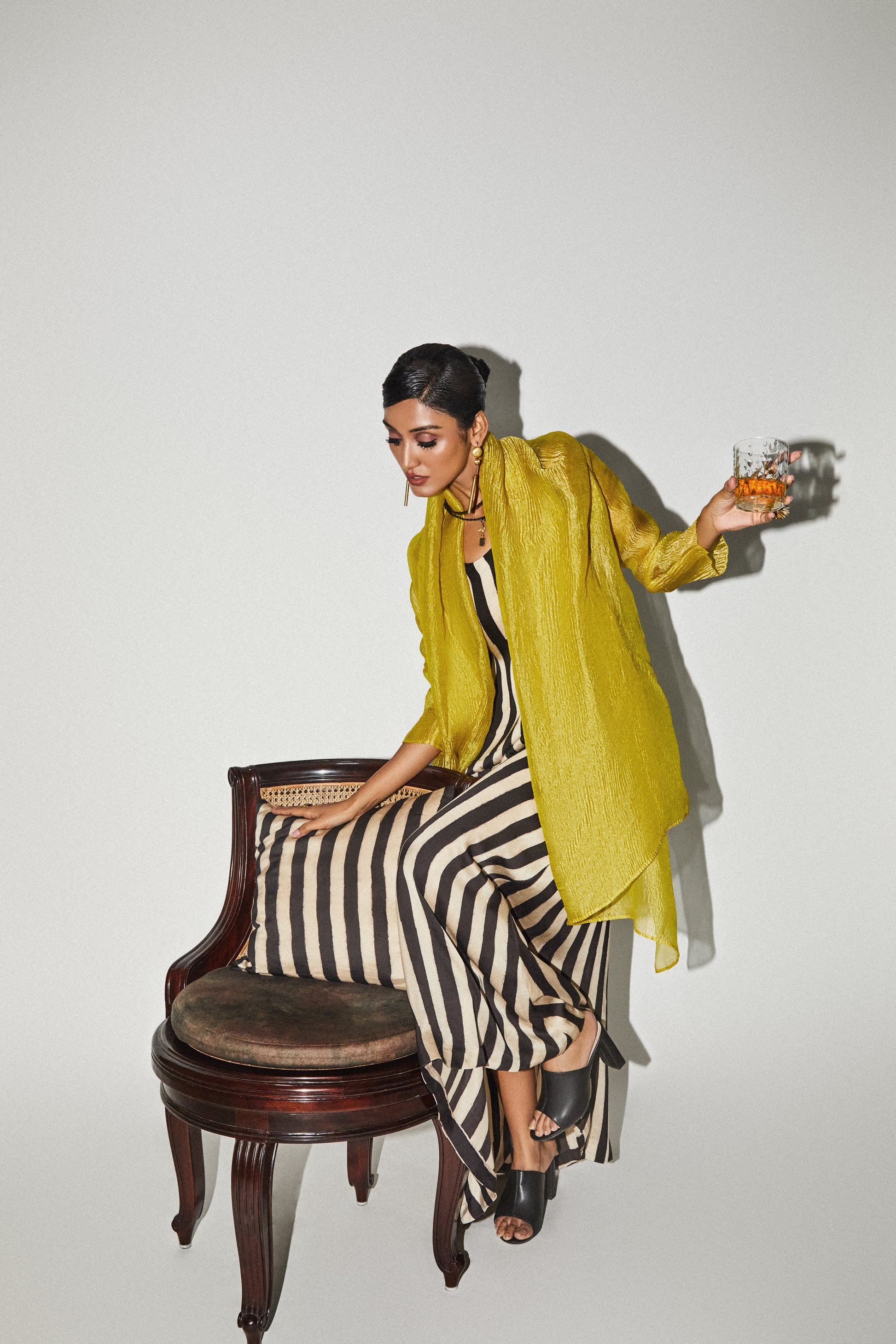 Capturing an easy yet elegant look, this organza jacket features sleeves with front open and fabric attached to be styled as stole or dupatta. Layer it up on dresses for a more uplifted look.