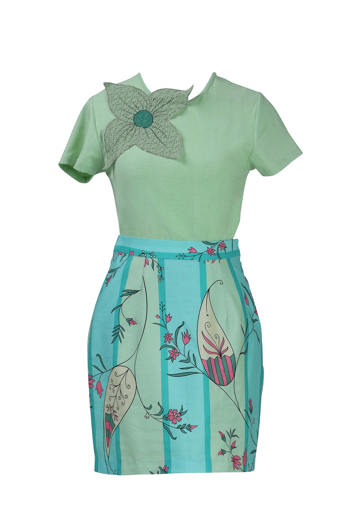 Retro stripes meet timeless paisley in this standout mini skirt. Whether styled for casual resort days or fun city explorations, this piece is playful, polished, and effortlessly cool.