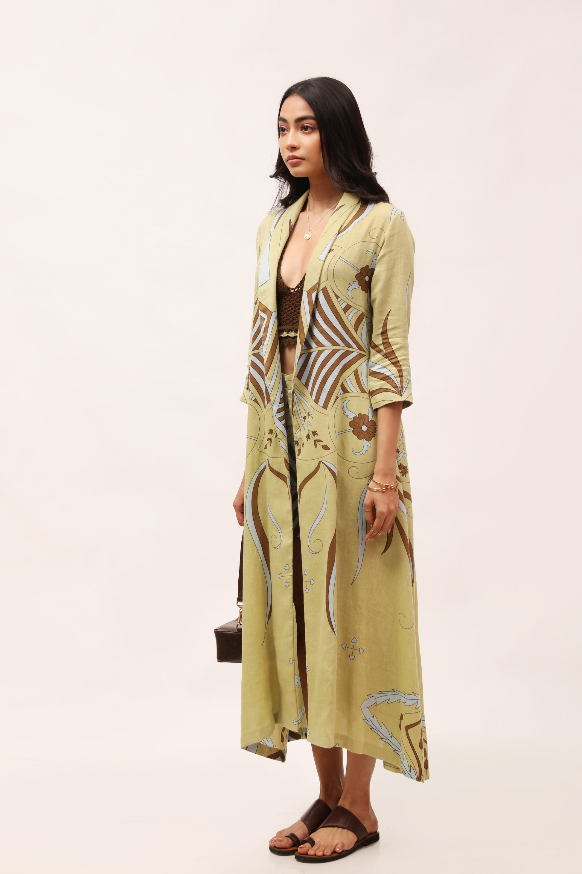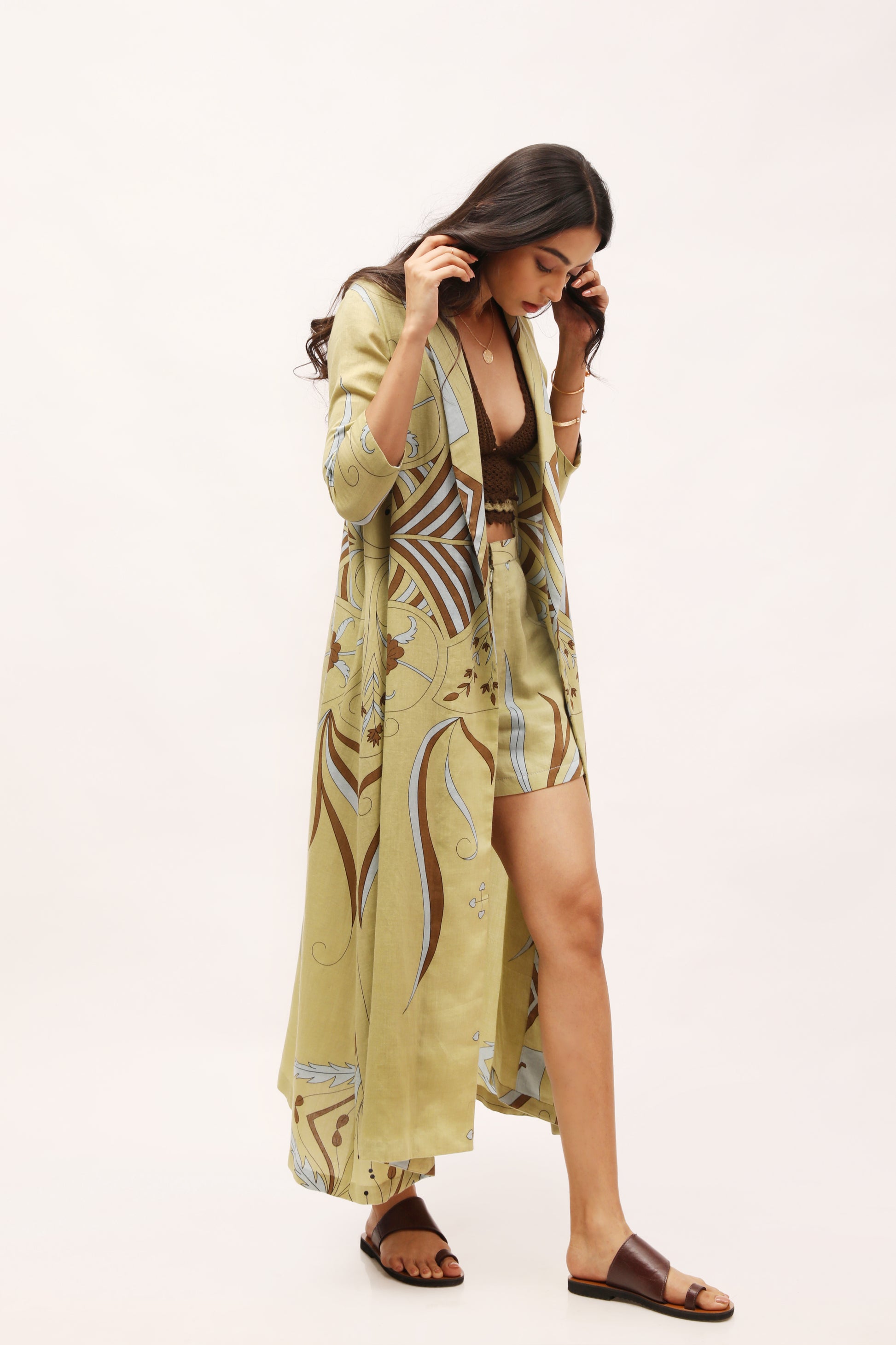 Designed for a relaxed fit, this printed summer jacket features a lapel collar and is front open. Layer it with the same print shorts and crochet bralette top as hinted by the label to complete the look.