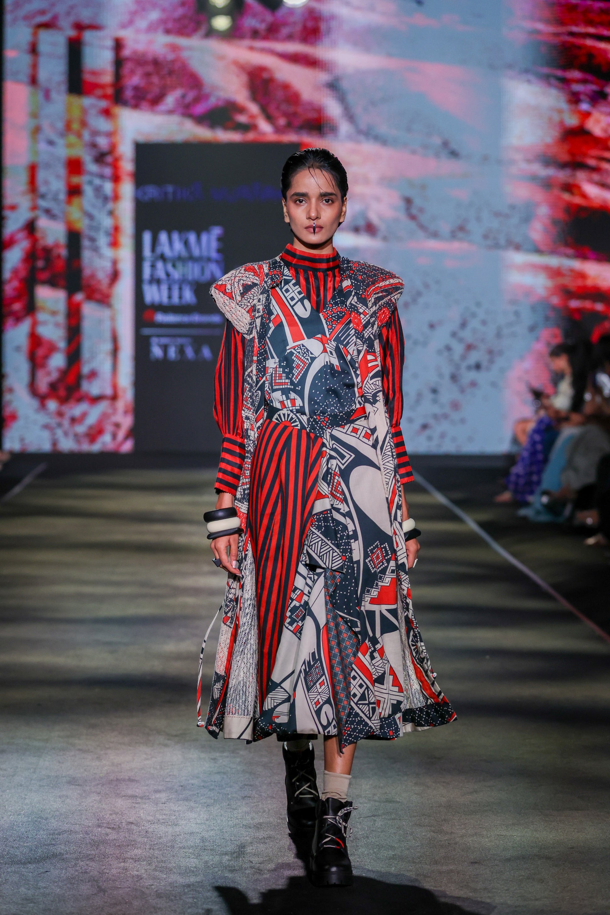 A versatile silhouette blending ease and artistry, this reversible dress features dual prints in rust and black tones inspired by earthy pottery motifs. The V-neckline adds a modern edge, while its soft, breathable fabric ensures graceful movement. Each seam is neatly finished with double stitching, highlighting high-quality craftsmanship. Style it as a day dress or reverse it for an evening-ready look. Ideal for vacations, brunches, and sophisticated gatherings.
