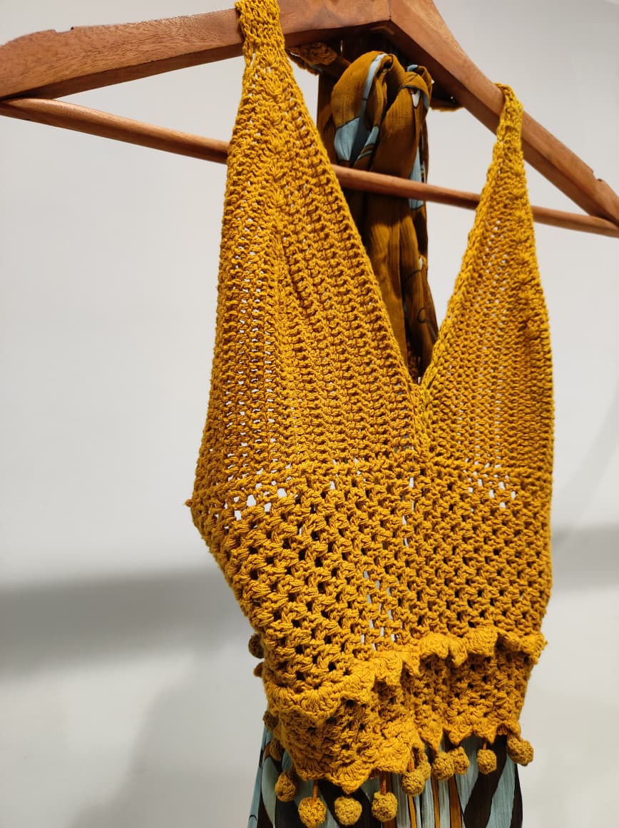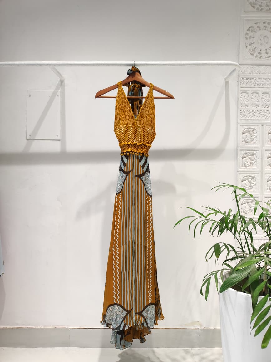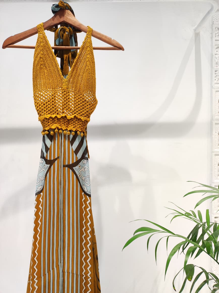 Expertly made from lightweight cotton, it features a crochet bralette bodice with a back tie-up and full, flared skirt that pairs perfectly with the season's favourite strappy mules and chunky sandals.