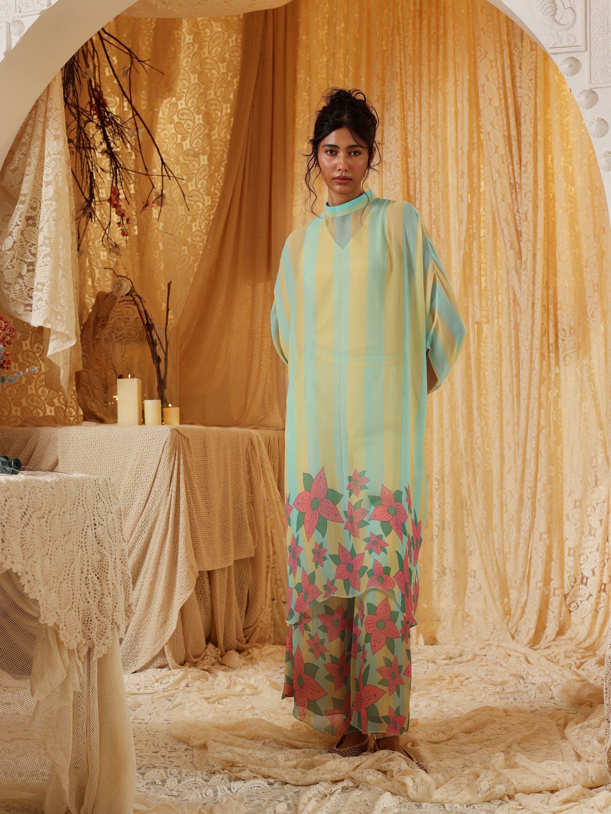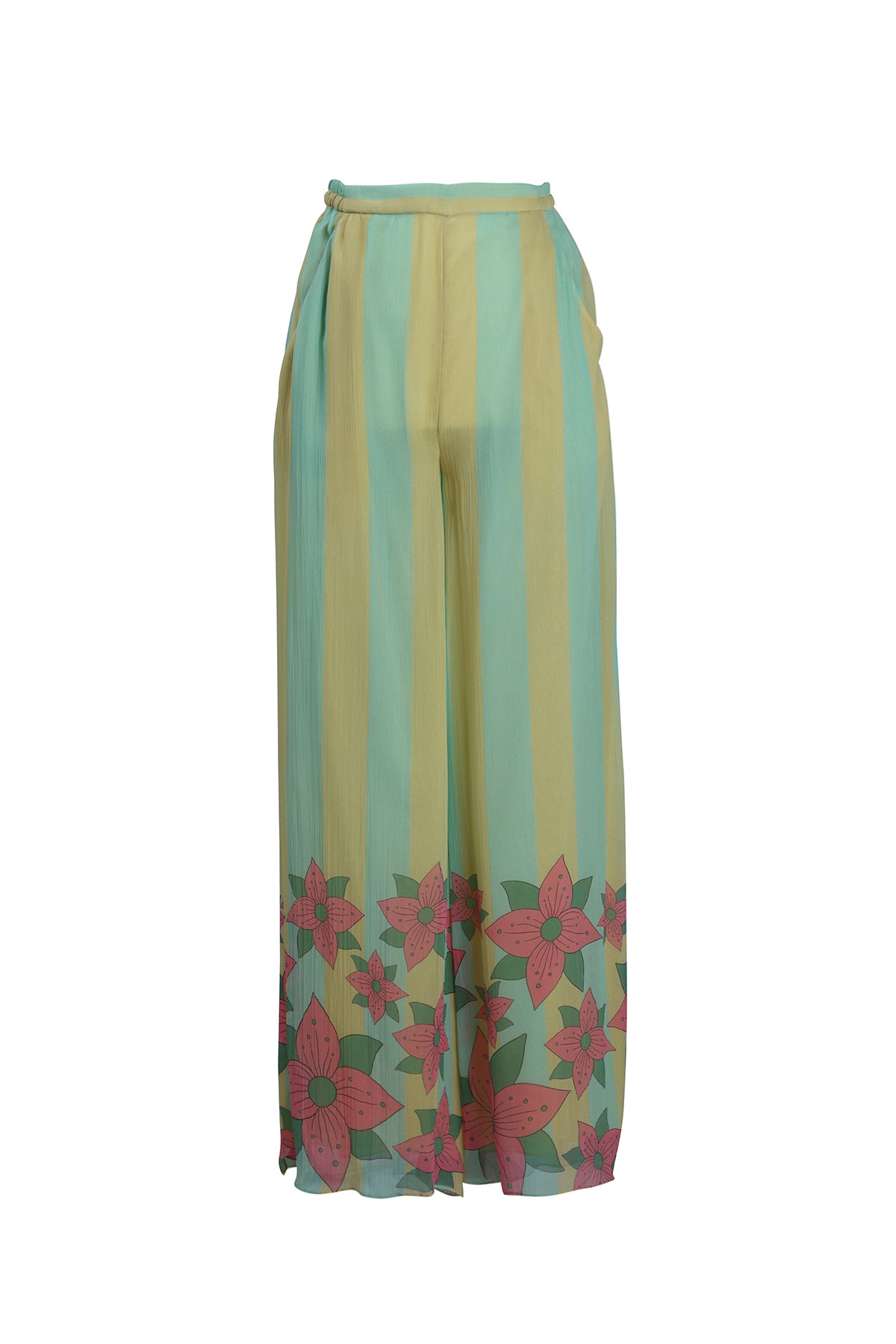Breezy, billowy, and bursting with personality—this chiffon batwing top is paired with relaxed-fit chiffon pants in a matching print, the set flows with you, perfect for destination dinners or relaxed resort mornings. Airy, chic, and full of vacation spirit, these pants celebrates freedom in both form and function.