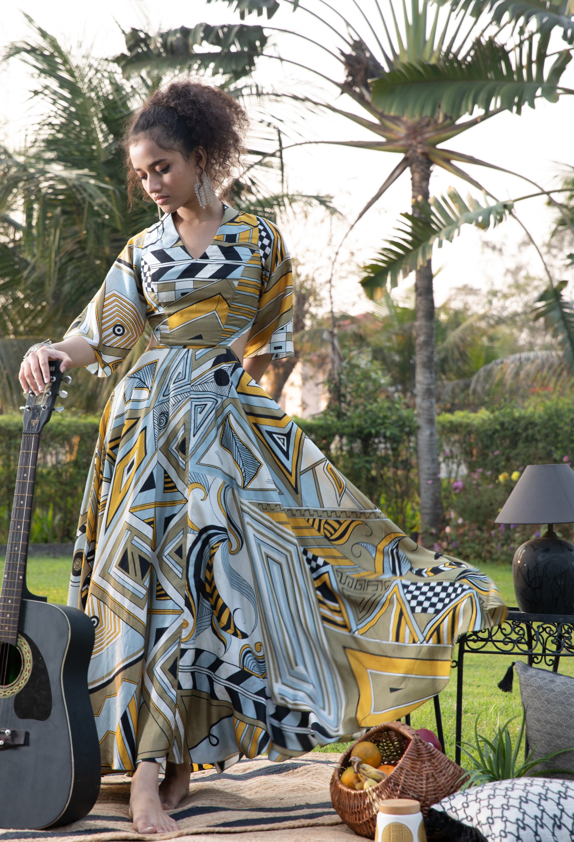 Yellow Printed Cutout Maxi